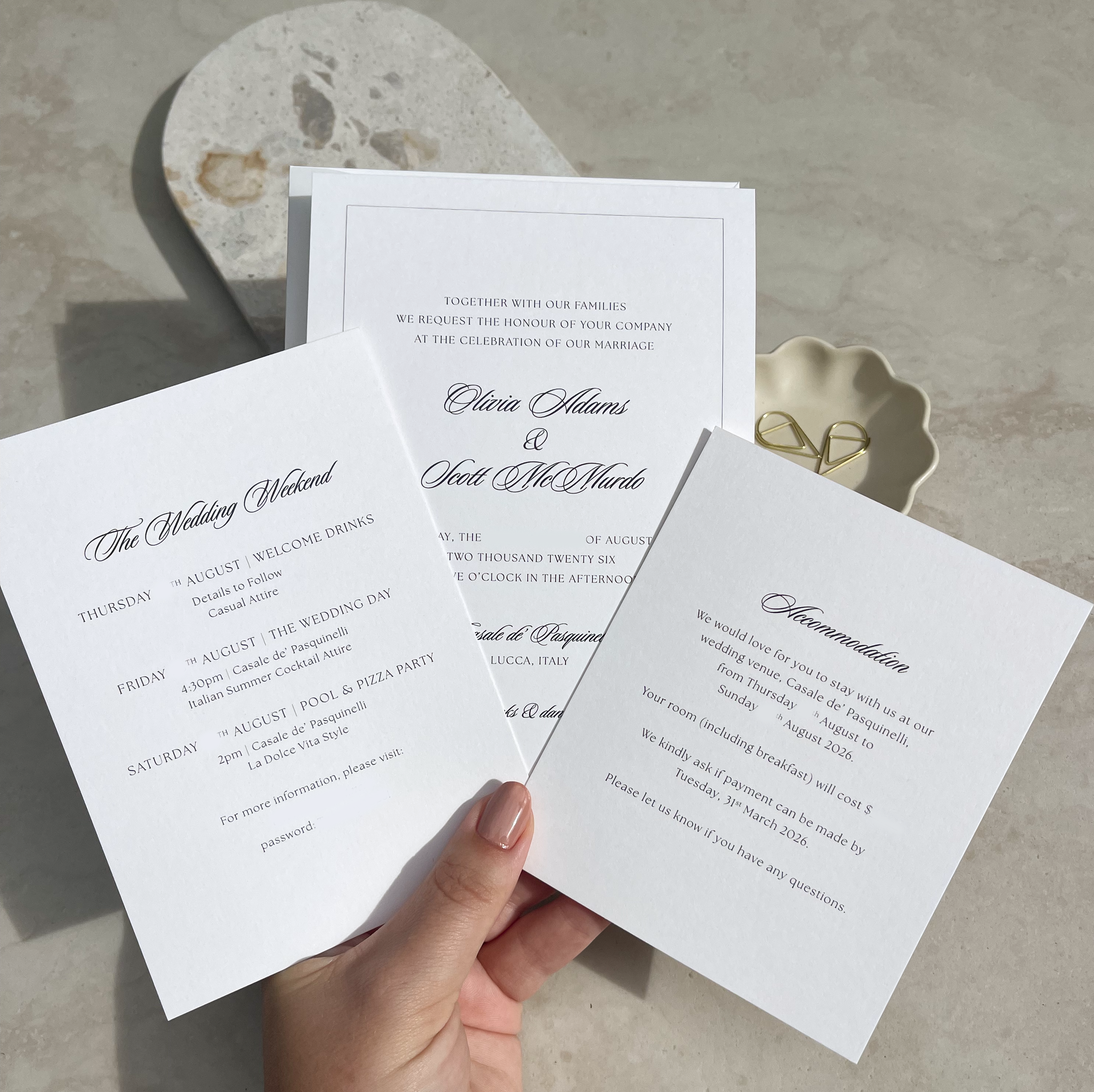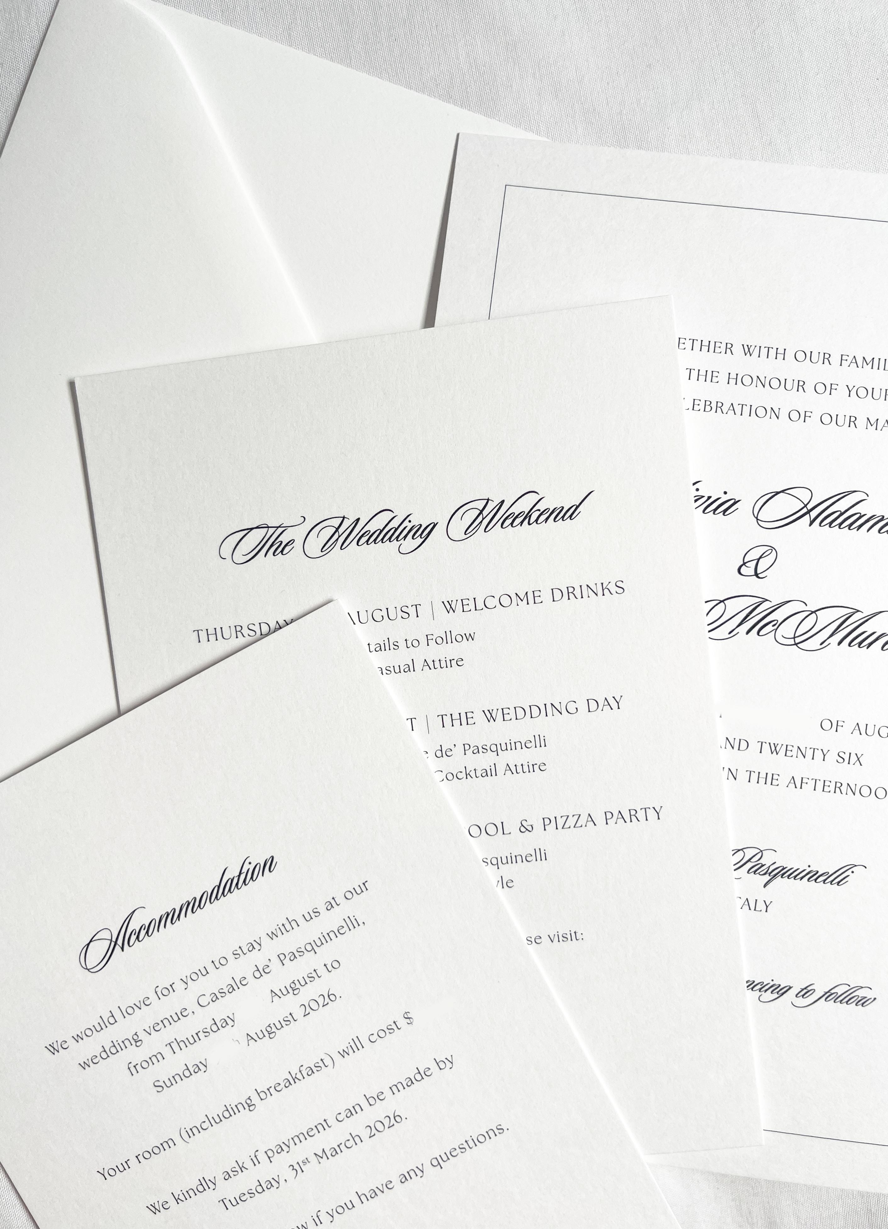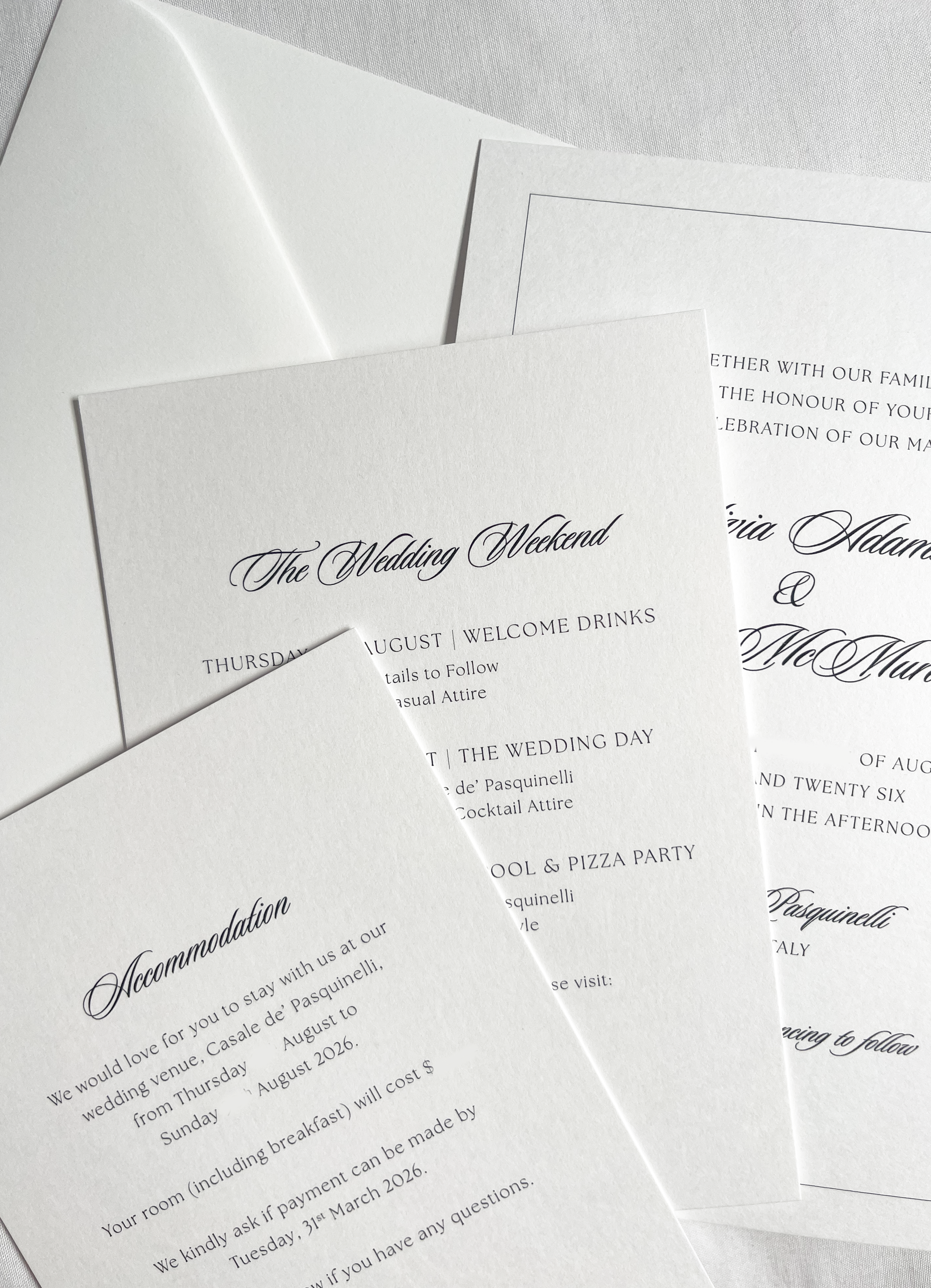 Start your stationery journey with a signature invitation suite. A curated, premium suite designed to make your wedding stationery timeless, aligned, and beautifully cohesive.